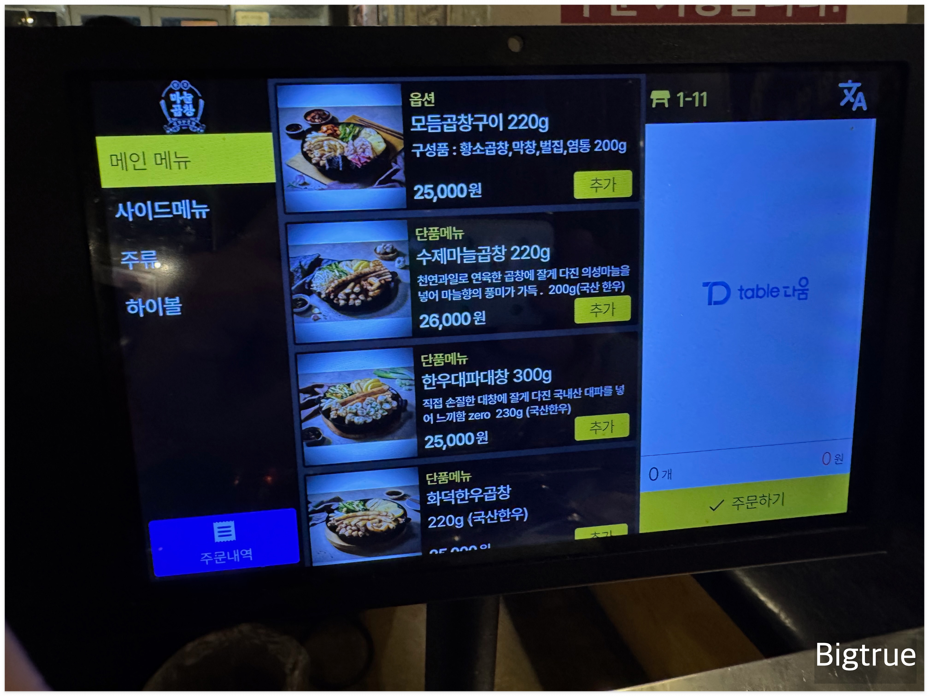 마늘곱창이 메인이라면,